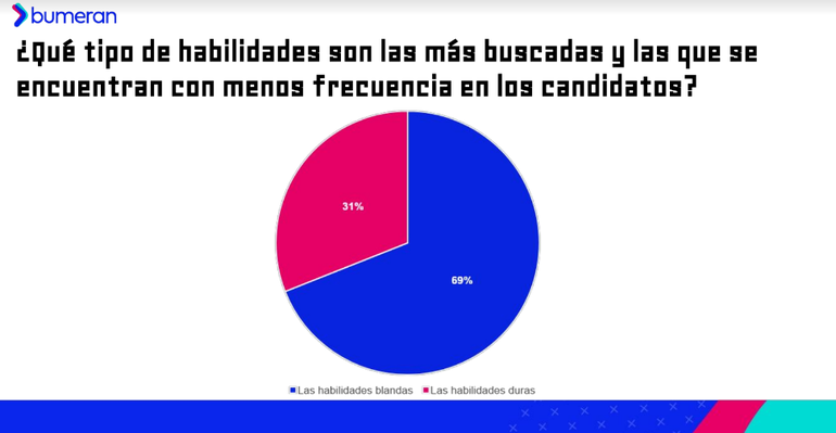 Además, Bumean dice que “el 69% de los especialistas en recursos humanos afirma que las habilidades blandas son las más buscadas y las que se encuentran con menos frecuencia en los candidatos”.