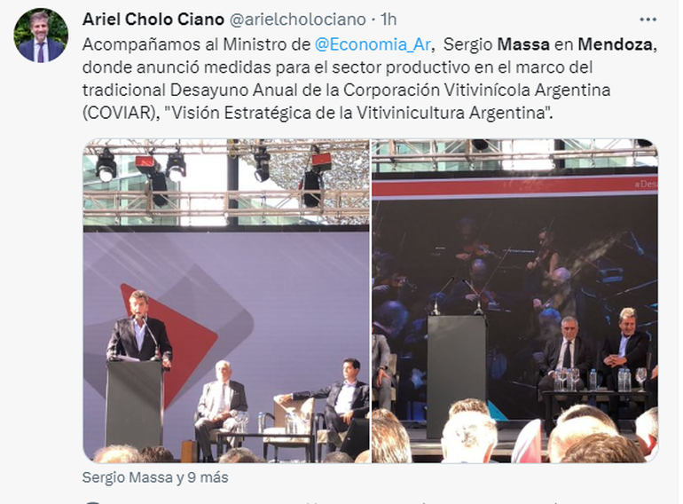 "Desde abril, así como pusimos en marcha para el complejo agroindustrial, vamos a acompañar a la industria vitivinícola", señaló Massa. "Desde el primero de abril, con competitividad cambiaria, tenemos que tener más vino argentino en el mundo", enfatizó el tigrense.