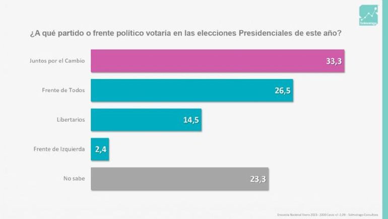 A pocos meses de las elecciones presidenciales, la consultora Solmoirago dio a conocer una encuesta sobre la imagen de los principales y potenciales candidatos. El Frente de Todos sigue mostrando una caída mientras que Junto por el Cambio se consolida como la principal fuerza electoral. En ese sentido, el actual Jefe de Gobierno porteño, Horacio Rodríguez Larreta, encabeza la lista de los candidatos con mejor intención de voto.
