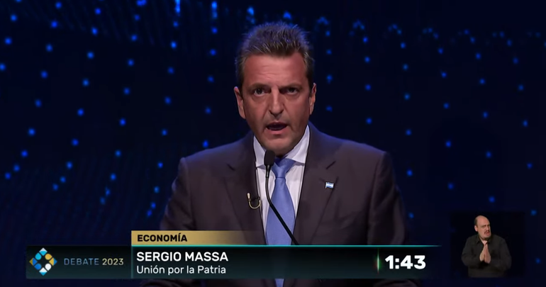 "La argentina tiene tres caminos: la vuelta al pasado, el salto al vacío en la locura y un camino de producción y trabajo. Construyamos una Argentina con una gobierno de unidad nacional", dijo Massa en su cierre en el Debate presidencial.