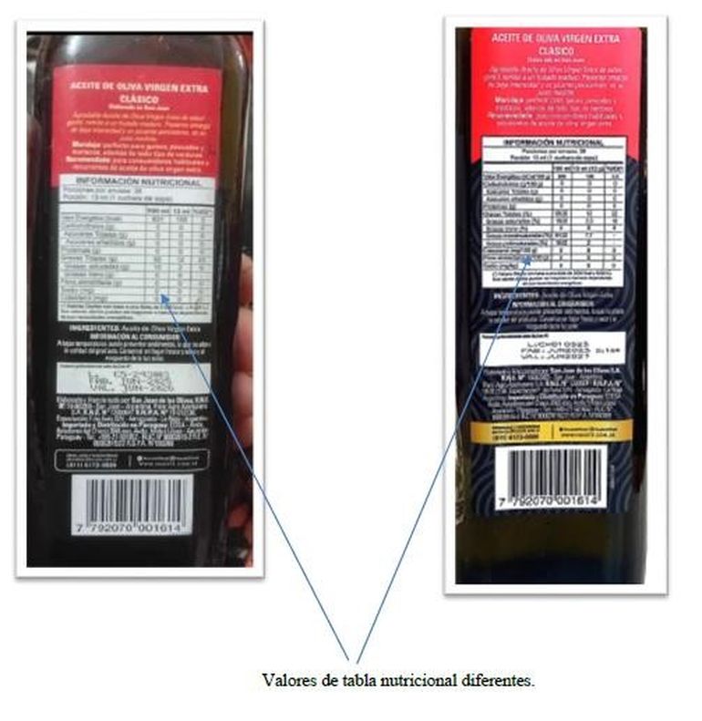 Según detalló el organismo, la medida se tomó tras un reclamo recibido ante esta Administración Nacional y confirmado por la empresa Agro Aceitunera S.A, titular del producto genuino, avisando que el producto identificado con el lote L. C5-243003, FAB. JUN-2025, VAL. JUN-2026 es falsificado ya que difiere del sistema de codificación de la empresa. Por otro lado, la fecha de vencimiento del producto genuino tiene 2 años de validez.
