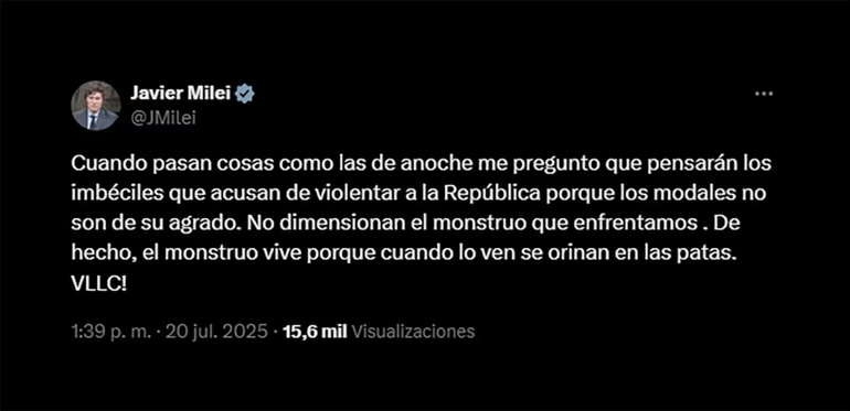El proceso de cierre de listas para las elecciones legislativas en la provincia de Buenos Aires, previstas para el 7 de septiembre, terminó siendo una radiografía del desorden político y las tensiones entre las principales fuerzas. En medio de este escenario, el presidente Javier Milei utilizó su cuenta de X para lanzar duras críticas, referirse a “imbéciles” y hablar de un “monstruo” sin nombrar directamente a ninguna fuerza, pero con una carga política evidente.
