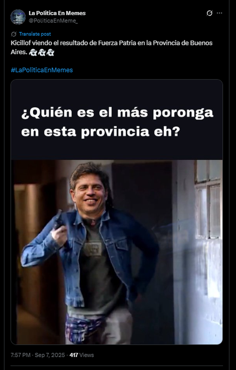 Así, la jornada electoral bonaerense se vivió en las calles, pero también en el espacio virtual, donde miles encontraron en la ironía una forma de participación ciudadana.