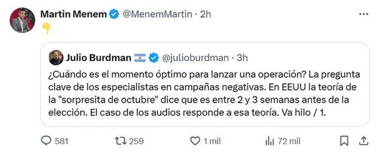 El mensaje de Julio Burdman retuiteado por Martín Menem