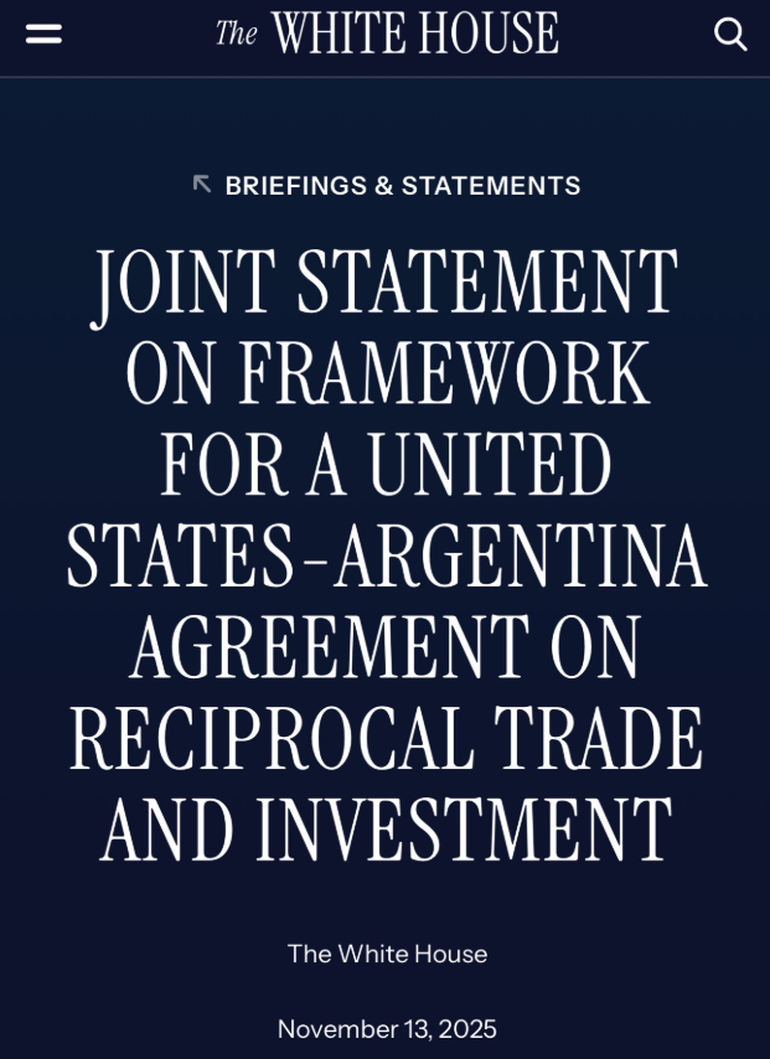 El Gobierno de Estados Unidos anunció este jueves un nuevo acuerdo marco de comercio e inversiones con Argentina. Según informó la Casa Blanca, el convenio tiene como objetivo “impulsar el crecimiento económico a largo plazo, ampliar las oportunidades de exportación e inversión y crear un entorno más transparente y basado en normas comunes”.