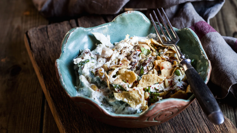 3. En tercer lugar, el Fattah Djaj, un aperitivo originario de la cocina de Medio Oriente. Es un plato que combina capas de pollo tierno desmenuzado con arroz y pan pita crujiente, todo bañado en una salsa de yogur, especias y frutos secos que realza el sabor.