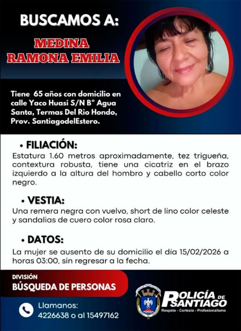 El hallazgo del cadáver se produjo tras una intensa búsqueda iniciada el domingo, cuando la familia de la víctima denunció su desaparición. Según indicaron, Ramona Emilia Medina había salido de su vivienda para asistir a los corsos de la ciudad y nunca regresó, lo que motivó la activación del protocolo de búsqueda de personas.