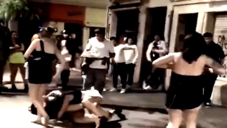 La trifulca que contó con patadas, piñas y tiradas de pelo ocurrió este domingo en la ciudad de Rosario. Video.