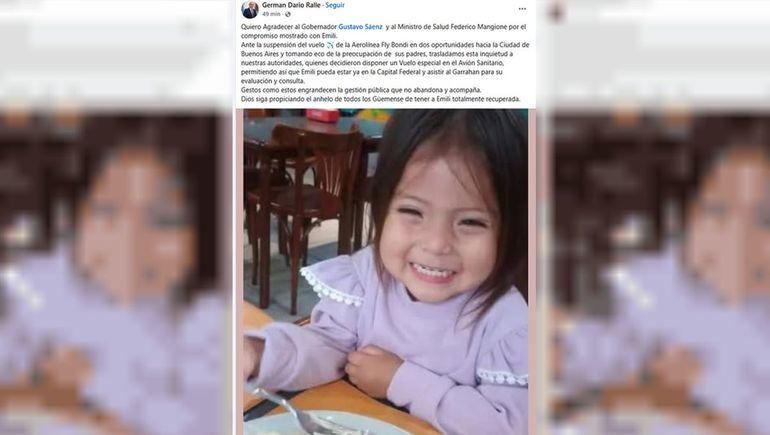 Frente a ese escenario, el gobierno provincial decidió intervenir. La única alternativa viable fue un avión sanitario, que finalmente permitió el traslado de la menor a Buenos Aires.