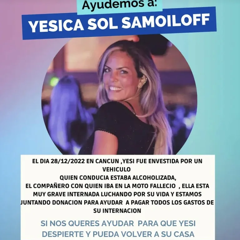 Como consecuencia del choque, Jesús, el joven que acompañaba a Samoiloff y que manejaba la moto, falleció en el acto, mientras que ella permanece en coma, aunque estable, en un hospital de la zona. Sin embargo, como no contaba con seguro médico, sus allegados deben hacerse cago de todos los costos.