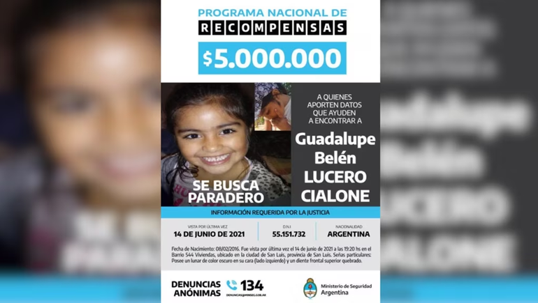 De esa forma, volvieron a confirmar que para toda persona que aporte datos fehacientes a la causa o que sepa dónde está la menor que tenía cinco años en el momento de su desaparición recibirá una recompensa de cinco millones de pesos. En ese caso deben comunicarse al número 143 del Ministerio de Seguridad de la Nación.