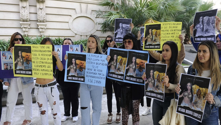 Con pancartas y carteles que reclamaban "Justicia por Emmily" y otras que apuntaban contra algunas de las testigos que estuvieron la noche del hecho con la víctima, un grupo de allegadas a la víctima también pidió que el caso sea esclarecido y la intervención de las autoridades diplomáticas en la causa.
