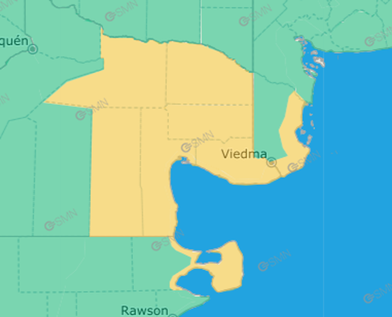 Por otro lado, el Servicio Meteorológico comunicó que el centro y este de Río Negro y la costa atlántica de la región de Biedma en Chubut, se verán afectadas por fuertes tormentas e importantes precipitaciones.