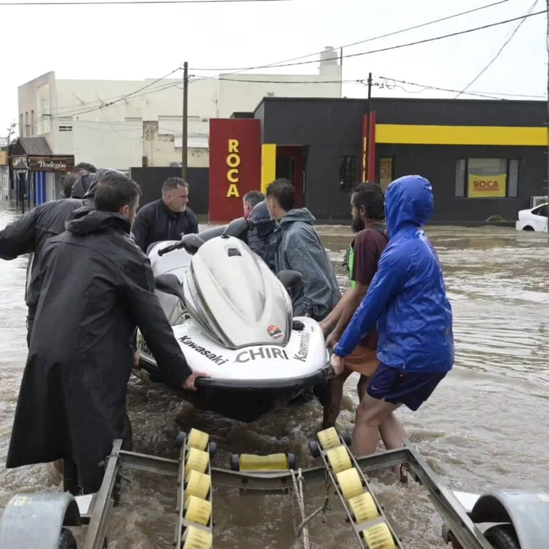 Es así que Lucas Bruna accedió a utilizar su moto acuática, la engancharon en una camioneta y la llevaron hasta la entrada del barrio." “Había como un metro de profundidad y, en el centro de la tormenta, cerca de dos metros", especificó.