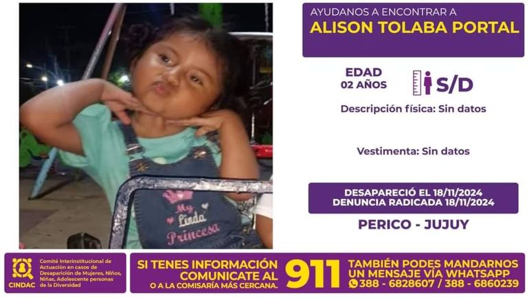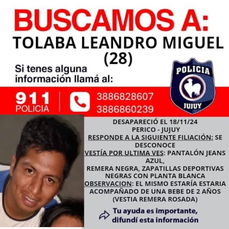 Desde ese momento, la Policía desplegó un intenso operativo para dar con el hombre y la nena. “Se activó el protocolo de búsqueda y se dispuso la detención de Leandro Miguel Tolaba. Se solicita la colaboración de la comunidad para localizarlo y salvaguardar la seguridad de la menor”, precisaron desde la policía local.