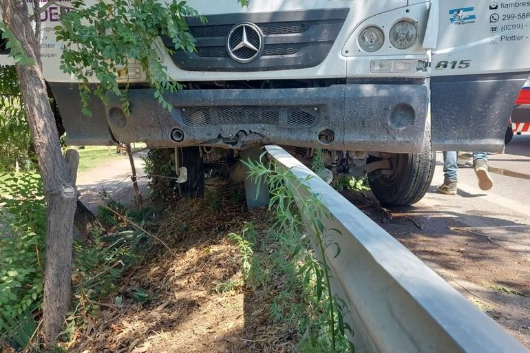"Quedó prácticamente bajo el camión", indicó Encina, quien destacó que, afortunadamente, el rodado mayor fue contenido por el guardarrail, los árboles y un poste, lo que permitió que se detuviera y “no se produjera un mal mayor”.