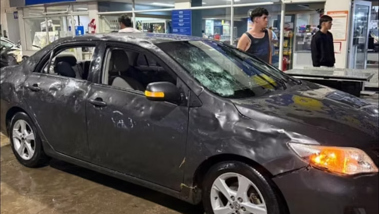 El auto quedó prácticamente destruido. La chapa abollada y los cristales dañados reflejan la magnitud del fenómeno. Aun así, Nicolás fue contundente: “El auto es lo de menos con todo lo que me podía haber pasado”. Tras intentar avanzar, se encontró con árboles caídos que bloqueaban el paso y debió regresar hacia Tortugas.