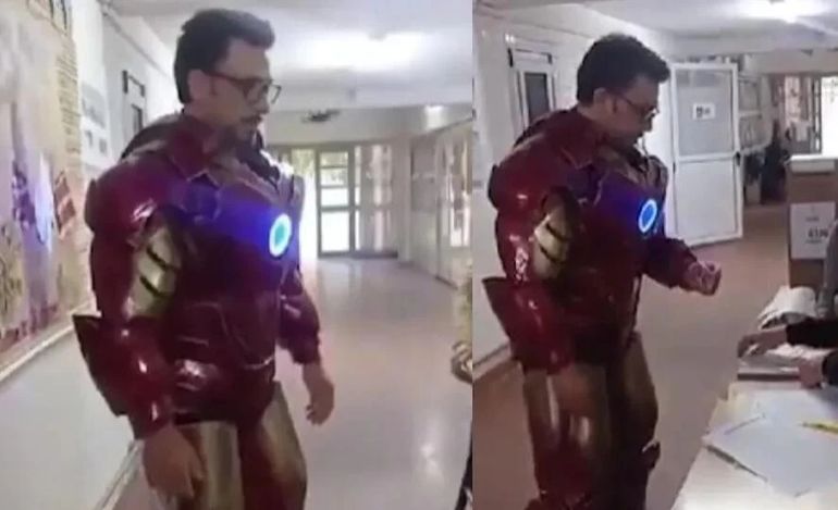 Los personajes de series o películas ya son un clásico en todas las elecciones. En esta ocasión, Gustavo Loiacono fue a votar con un disfraz de Iron Man, el superhéroe de Marvel.