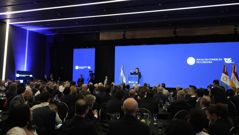 Javier Milei en la bolsa de Comercio de Córdoba: "Desde febrero la política no para de poner palos en la rueda"