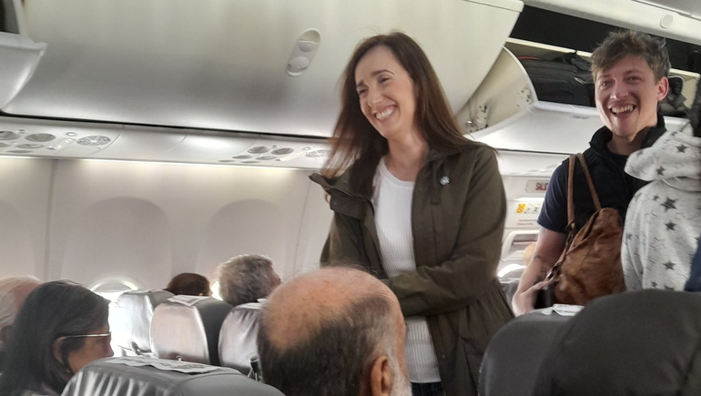 Todos ingresaron riéndose a la cabina del avión, según pudo registrar la agencia Télam. En el mismo vuelo también viajaban algunos colaboradores de Patricia Bullrich.