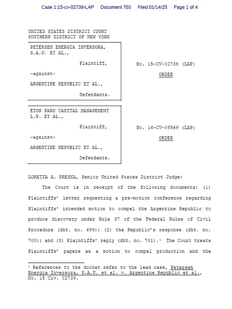 El fallo que hizo público Sebastián Maril, de Latam Advisors, señala que Preska criticó la actitud argentina sobre la entrega de la documentación.
