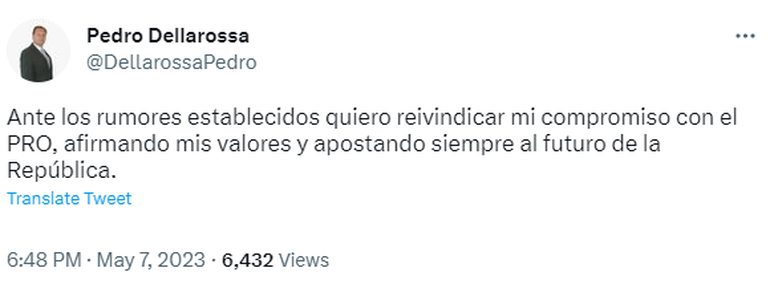 Luego en las redes sociales reivindicó su “compromiso con Pro, afirmando mis valores y apostando siempre al futuro de la República”. También aseguró que va “a trabajar junto a Juez y todo su equipo para ganar y gobernar la provincia”.