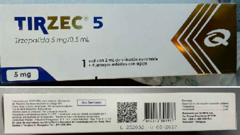 Se trata de TIRZEC -tirzepatida 5 mg/0.5 ml, L 252092, V 06/2027, Quimfa SA-, que fue detectado en una farmacia ubicada en Pilar, provincia de Buenos Aires.