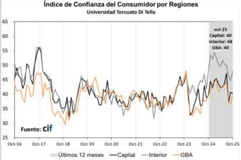 Si bien recuperó terreno respecto de una fuerte baja de agosto, el nivel de confianza está muy similar al de octubre de 2024.