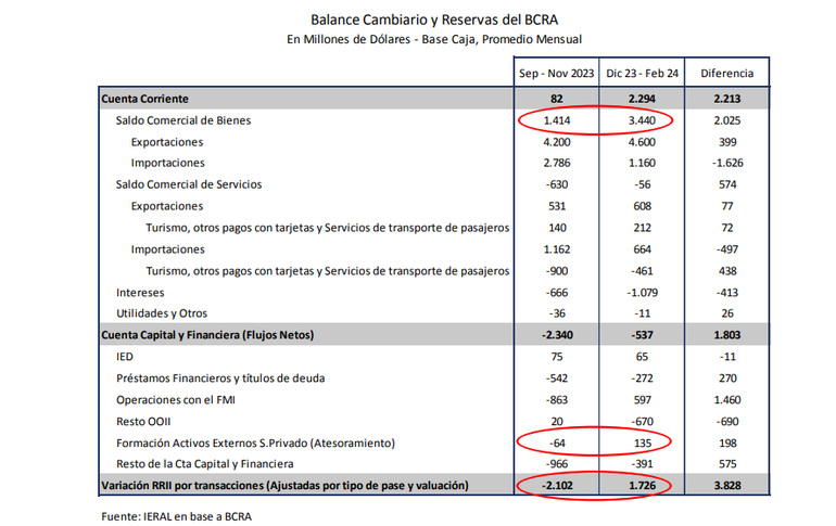 Como resultado de estos cambios de tendencia, se logró un promedio mensual de acumulación de divisas por parte del BCRA por casi u$s1.730 millones entre diciembre y febrero, guarismo que compara con la pérdida promedio de u$s2.100 millones por mes para el período septiembre-noviembre.