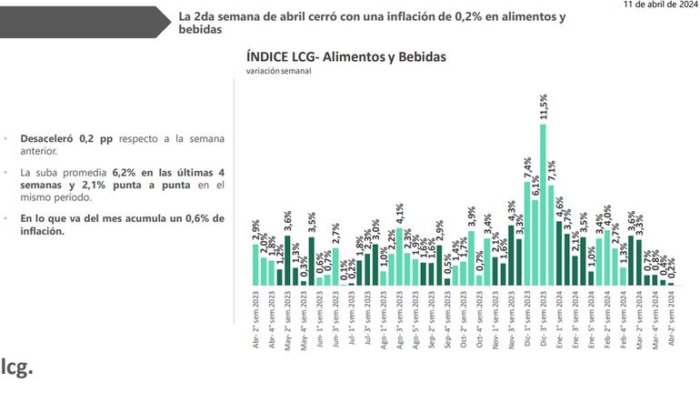 Los datos corresponden a la consultora LCG, a apenas algunas horas antes de que se conozcan los datos oficiales del IPC de marzo que los analistas estiman que estará cercano al 12%