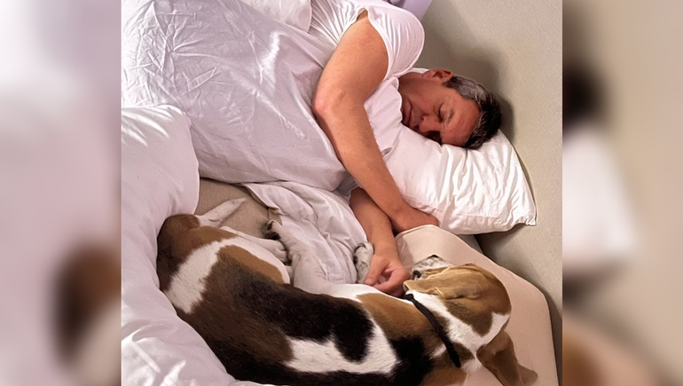 “El reposo del guerrero”, escribió Galmarini junto a la imagen en la que el líder del Frente Renovador aparece durmiendo en la cama junto a su perro. A continuación, agregó: “¡Con vos hasta el infinito!”.