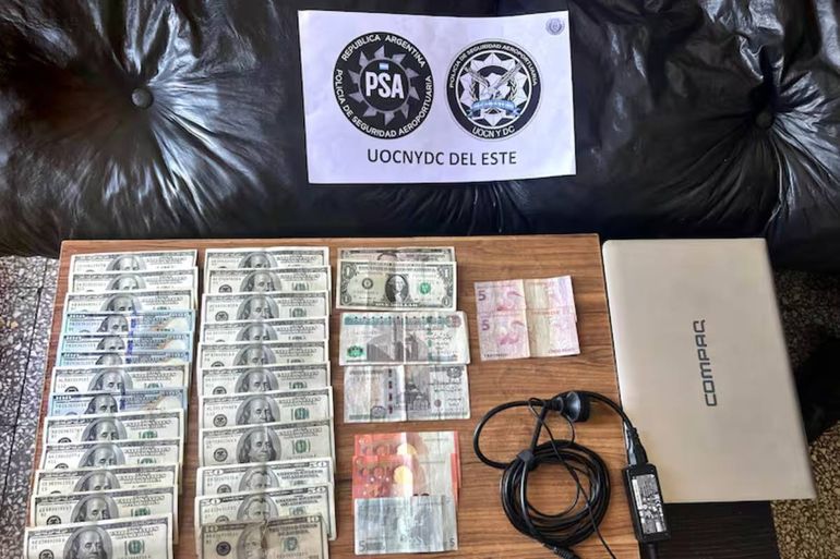 En los allanamientos, además de los aros, las libras egipcias y los dólares, el personal de la PSA secuestró un reloj marca Louis Féraud un parlante bluetooth, indumentaria oficial que utilizaron atletas argentinos en Paralímpicos de París, zapatillas, candados con llaves, ropa de oficial de la selección de Venezuela, una computadora, municiones de armas de fuego y un cuchillo.