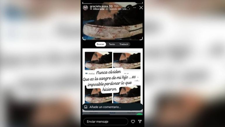 Previo a que se dé a conocer la entrevista por Telenoche, la mamá de Báez Sosa subió a sus historias de Instagram diversas imágenes donde expresó su enojo por las declaraciones de Thomsen.