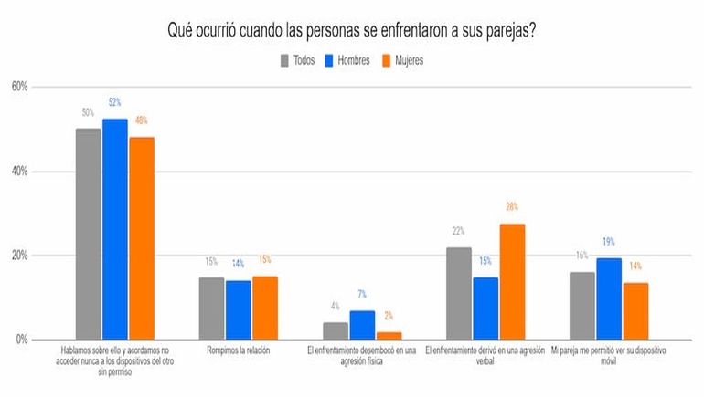 De quienes enfrentaron a su pareja luego de haberlas descubierto con las manos en la masa, la mayoría decidió conversar sobre el asunto para que no suceda de nuevo. Pero cerca de un cuarto de los encuestados (22%) declaró que el incidente desencadenó en abuso verbal.
