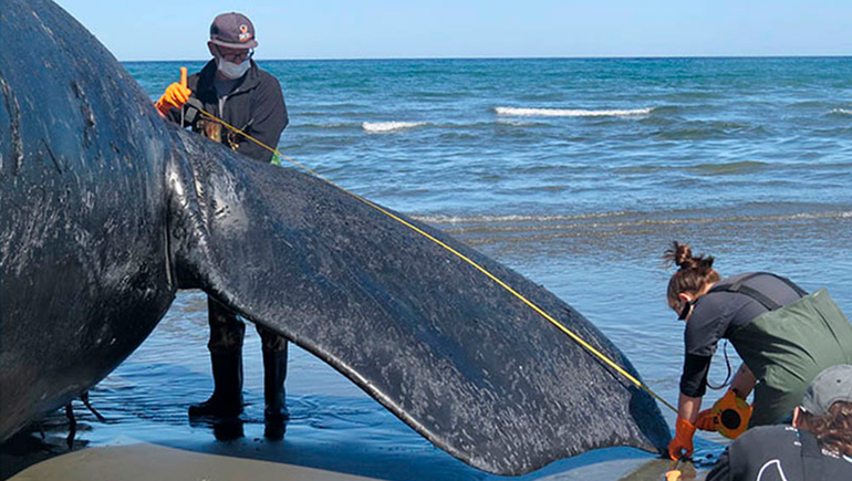 Gandón indicó que, según le comentaron las personas que hacen avistaje, "se ven manchones de algas como nunca y se cree que eso pueda tener vinculación con la mortandad de ballenas".