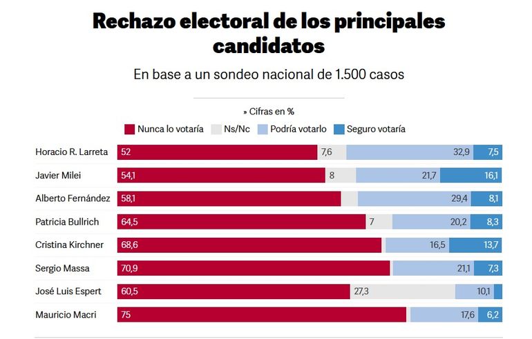 El relevamiento presencial se llevó a cabo entre el 27 de febrero y el 13 de abril, con una muestra de 1.500 casos en todo el país y un margen de error de +/- 2,2%. Además de los resultados parciales a favor del oficialismo, las mediciones de las primarias también muestran que el candidato más popular individualmente es Javier Milei, quien supera el 20% de intención de voto.