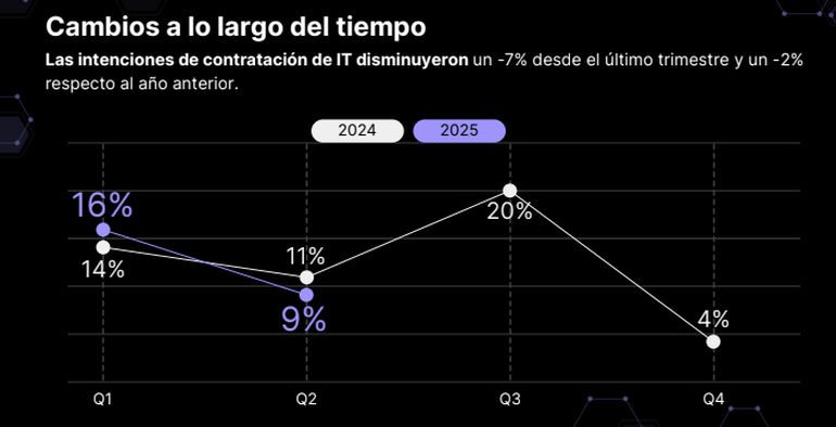 “Además, cabe destacar que las intenciones de contratación han disminuido un 7% en comparación con el trimestre anterior y un 2% respecto al año pasado”, plantea el estudio.
