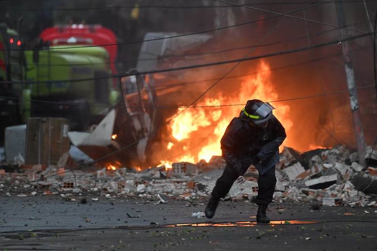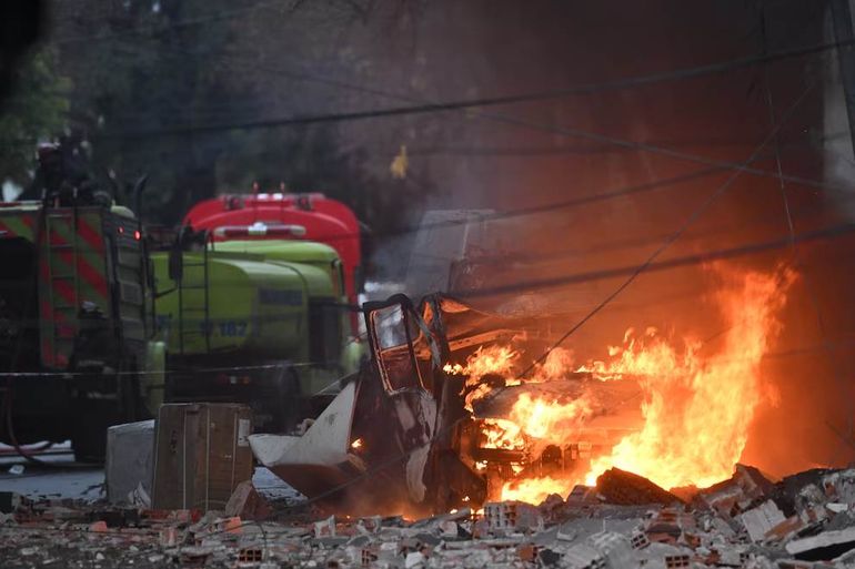El funcionario también confirmó que “no hay vecinos heridos ni personal herido”, y que “las tareas que se deben realizar son sofocar los sectores activos, luego remover material y enfriar la zona, para que posteriormente se habrá una etapa posterior de escombramiento”.