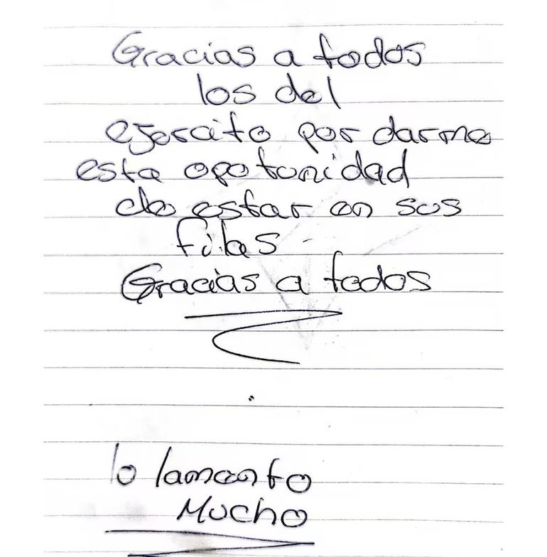 Además, el joven agradeció a las fuerzas y se disculpó por su decisión: “gracias a todos los del Ejército por darme esta oportunidad de estar en sus filas. Gracias a todos. Lo lamento mucho”.