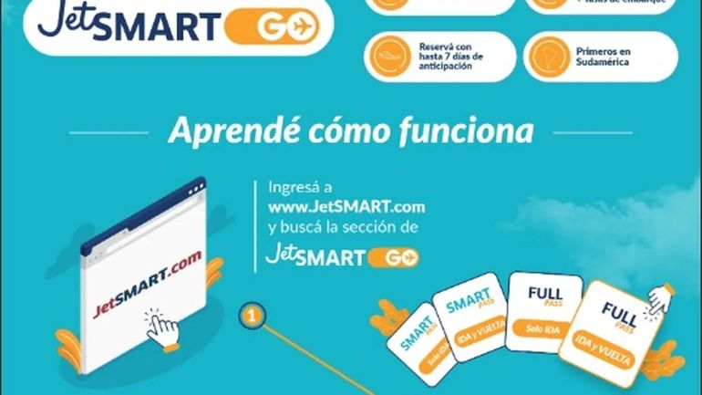 JetSMART anunció este lunes el lanzamiento de JetSMART GO, una nueva modalidad de suscripción mensual para vuelos domésticos en Argentina, Colombia, Chile y Perú, que, según la empresa, representa la primera iniciativa de este tipo en Sudamérica. En esta nota te contamos como acceder al beneficio para viajar a menor costo.