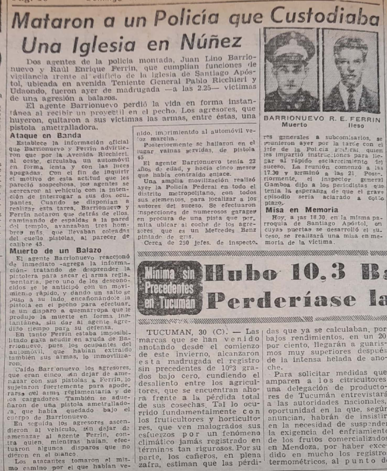 El resistente peronista cordobés Julio Ulderico Carrizo, recuerda haber visto en la Iglesia del barrio San Vicente al padre Lazaro y el padre Martinez repartiendo armas a los jóvenes católicos en los días de la “libertadora”; y también menciona al padre Quiroga de la iglesia de la calle Dean Funes, como promotor de comandos civiles.