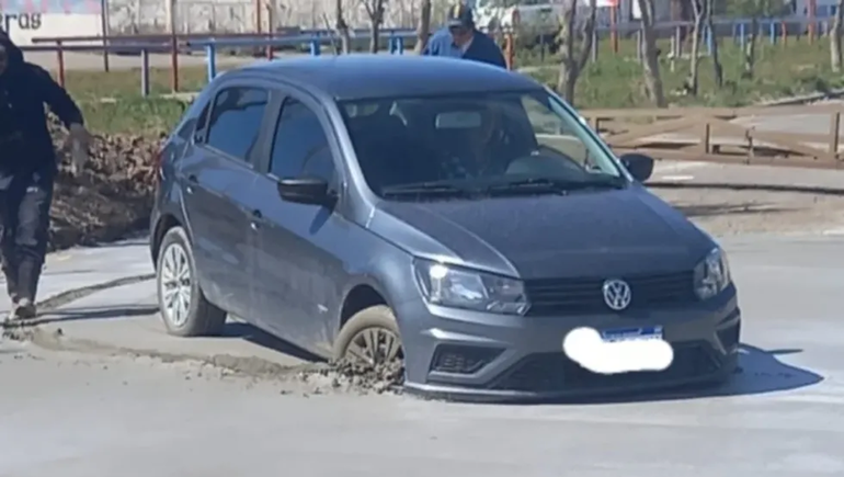 Una mujer que manejaba distraída protagonizó un insólito hecho en la localidad de Pico Truncado, Santa Cruz cuando sin darse cuenta de la señalización ni de la presencia de los trabajadores que pavimentaban la calle, avanzó y quedó atrapada en el cemento fresco.