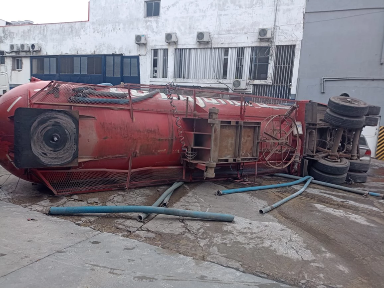 Había versiones cruzadas sobre si el camión de 50 toneladas trasladaba desechos cloacales o agua con cemento, como había surgido en las últimas horas.