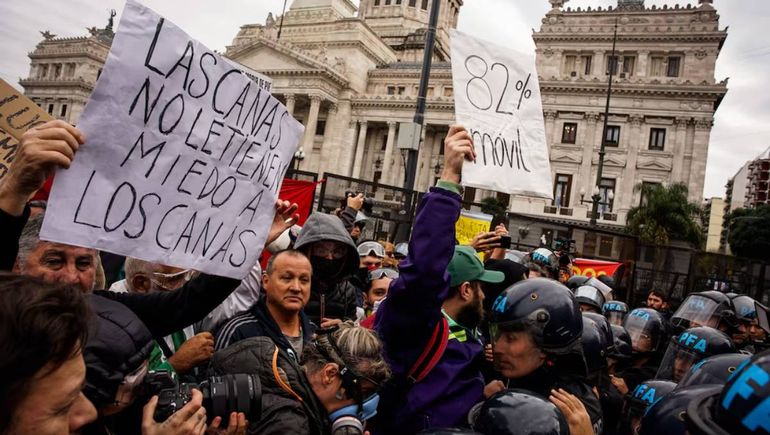 La Policía aplicó el protocolo antipiquete, mientras, en el Congreso, la oposición no logró el quórum para tratar varios proyectos jubilatorios.