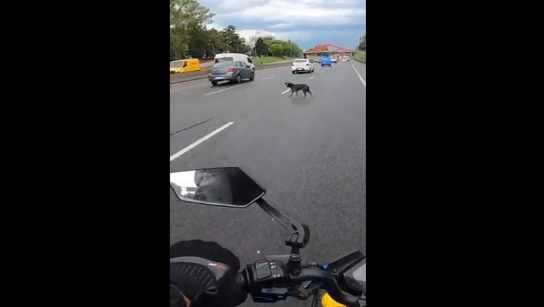 El video, captado desde la propia cámara de Díaz, muestra el momento exacto en que el motociclista advierte la situación del animal. Sin pensarlo dos veces, el motociclista detuvo su moto en la banquina y, a pesar del peligro que implicaba bajarse en una autopista con tráfico constante, se acerca con cuidado para tratar de calmar al perro.