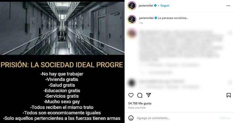 El Presidente subió una imagen que analizaba la prisión desde una perspectiva particular. La llamó "la sociedad ideal progre".