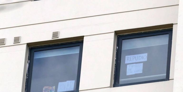 El expresidente vive en el departamento que le prestó su amigo Enrique “Pepe” Albistur, ubicado en esa zona residencial de la Ciudad de Buenos Aires. Este domingo, las cámaras periodísticas captaron en las ventanas de otros departamentos, las consignas: “Repudio” y “Típico de machirulo”.