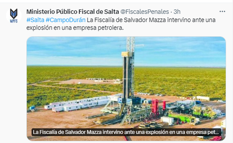 Además, desde el Ministerio Público Fiscal (MPF) de Salta informaron este viernes por la tarde que el hecho ocurrió en la empresa Tecpetrol, ubicada en el paraje Campo Durán, a 400 kilómetros al norte de la capital salteña.