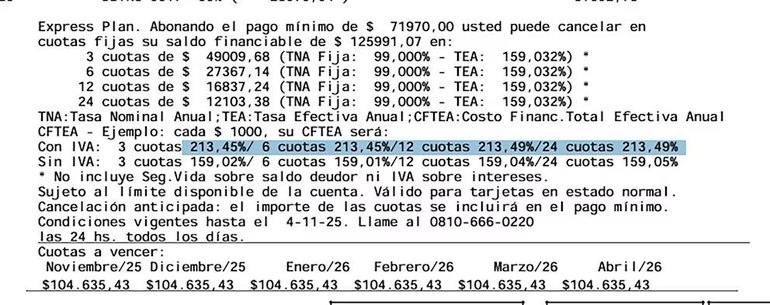 La asesora dejó en claro que cubrir el mínimo no se presenta como una buena solución, sino como la opción menos nociva en el corto plazo. No obstante, advirtió sobre las consecuencias de esa decisión: “Con el pago mínimo estás entrando en una espiral peligrosa porque en estos momentos la tasa de refinanciación está en un 159 por ciento. Esto significa que en un año más que duplicaste la deuda original porque lo que hace es el pago mínimo pagar intereses pero el capital sigue ahí entonces sigue generando la deuda se sigue ampliando a una tasa que es descomunal es exorbitante”.