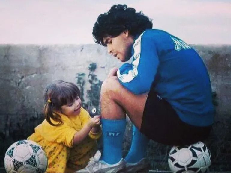 "Por más que nos quieran apagar, no van a poder apagar tanto Diego. Por eso, hay que venir, pintar de nuevo, pegarle sus figuritas", dijo el joven que procedió a pegar un sticker de una icónica imagen del futbolista en 1989, donde su hija Dalma, con tan solo dos años, le colocaba margaritas en sus medias de fútbol mientras él entrenaba con el Napoli.